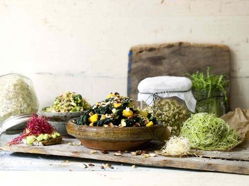 Groddade linser m citrondressad mango och kål En underbar sallad full med massor av vitaminer, välbalanserade smaker och olika konsistenser. När linserna groddas får de en god nötig smak.