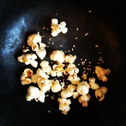 1,5 liter poppade popcorn (ca 1 dl opoppade) 75 g smör ca 1 msk srirachasås 3 msk sesamfrön