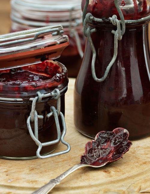 Drottningens lyxiga sylt med mörk choklad En riktigt lyxig sylt som får extra smak av fin mörk choklad. Ta så mycket choklad som själen behöver och plånboken tillåter – den mindre mängden ger en lätt antydan. Det går bra att använda frysta bär. Satsen räcker till 2-3 burkar.