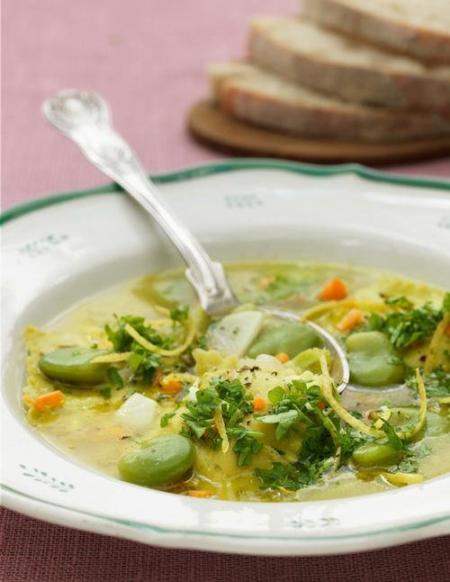 Det är lite pill med den här soppan eftersom man måste ta ut bönorna ur sin skida. Ett trevligt terapijobb om du frågar mig. Har du inte orken kan du ersätta bönorna med frysta edamame (sojabönor), ett bra alternativ både för lata dagar och vintern. Pastan kan bytas ut mot lite potatis i bitar. Och glöm inte att välja ekologiska citroner. De är mycket mindre men är också mindre besprutade än konventionella.