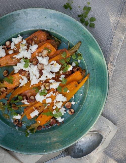 Karamelliserade morötter med fetaost och nötter Lakritstonerna från fänkålen och körveln smakar fint ihop med den karamelliserade apelsinen. 4-6 portioner