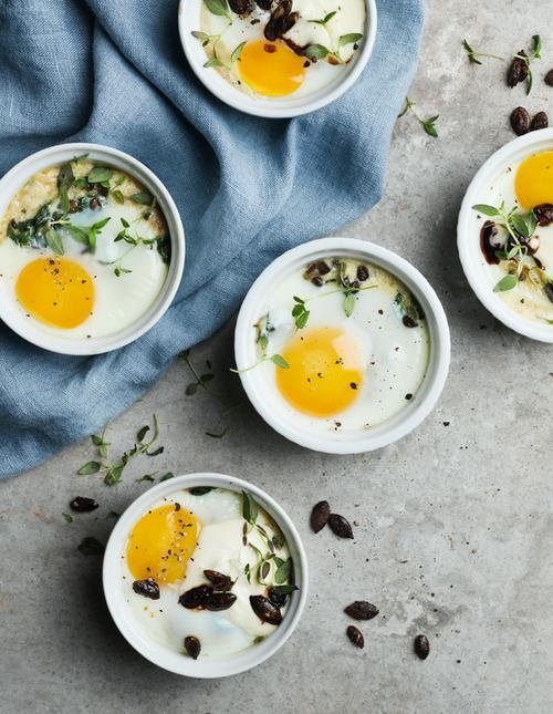 Ägg i cocotte med spenat – och linsröra Cocotterna går bra ett förbereda fram till äggknäckningen. 6 portioner