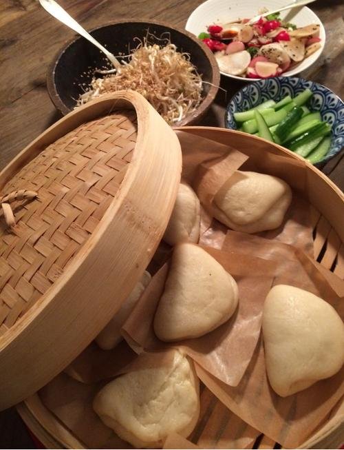 För några år sedan var jag i New York och åt Momofukus porkbuns. Jag minns smaken som om det var igår, den där ljuvliga kombinationen av sött fluffigt bröd, salt krispigt fläsk, söt kryddig hoisinsås och lite upp-piggande sirachasås. Numera behöver man inte åka ända dit för att äta dem. De finns t ex på restaurang Nook´s barmeny eller så kan du göra dina egna.