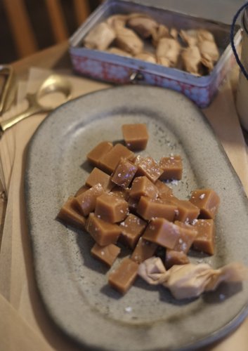 Igår kväll var jag oerhört effektiv. Samtidigt som jag kokade lakritskola med flingsalt och citronskal fredagsmös jag med en skål popcorn vid spisen. Då slog det mig. Hur gott skulle det inte vara med smörkola med popcornsmak? Eftersom det fanns några opoppade popcorn kvar i kastrullen så slängde jag ihop en sats och fortsatte mysa.