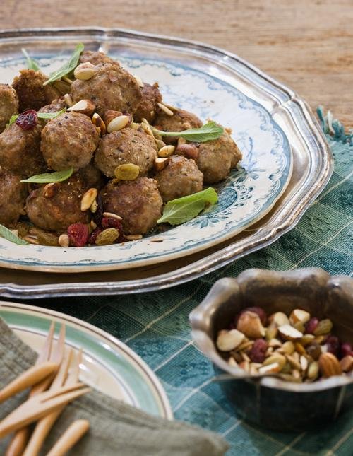 På en glöggfest tycker jag man behöver lite rejäla snacks att tugga på så att man inte dör sockerchocksdöden eller får för mycket päls på tänderna. Här är köttbullar med god smak av lamm och salvia med lagom julig känsla.