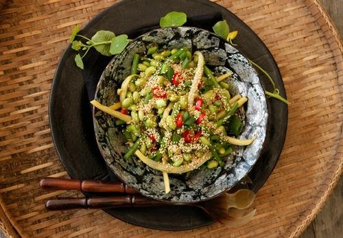 Bönsallad med lime, sesam och soja Lagom till 4-6 personer. Vill du ha salladen matigare lägger du bara till lite nudlar eller stekt tofu.