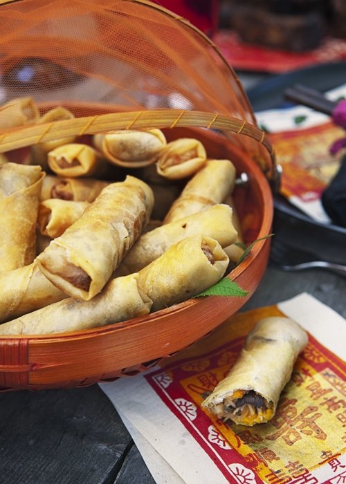 Vårrullarna kan gärna serveras som en del av den kinesiska kräftskivan. Eller förresten, inte bara då, de är sjukt goda så de förtjänar ett bättre öde en att sällskapa med kräftor under en kort period. Ät dem året runt!