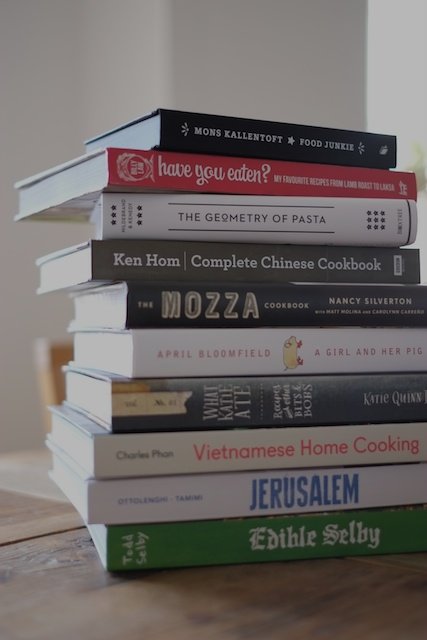 Food Junkie – Mons Kallentoft Have you eaten? – Billy Law The geometry of pasta – Jacob Kenedy & Caz Hildebrand Complete Chinese Cookbook – Ken Hom The Mozza Cookbook – Nancy Silverston A girl and her pig – April Bloomfield What Katie Ate – Katie Quinn Davies Vietnamese Home Cooking – Charles Phan Jerusalem – Otto Lenghi & Sami Tamimi Edible Selby – Todd Selby