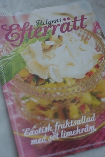 Jag har gjort många recept genom åren. Om jag skulle dra till med en gissning så skulle jag spontant säga 700 stycken. Men det kan lika gärna vara det det dubbla, jag har helt enkelt inte koll. I affären idag var det något synnerligen bekant över en bild. Och när jag tittade närmare på receptet var det ett gammalt recept från tidningen Ica Buffé som hade fått ett nytt liv på ett lösblad. En exotisk fruktsallad med en av mina favoritfrukter – passionsfrukt. Salladen har både hetta och friskhet och är fint matchad med en söt kräm på kondenserad mjölk, yoghurt och lime. Det känns kul att vispa ihop något annat än dulche de leche på den söta mjölken. Och precis som Ica tycker jag att det här receptet är värt att publicera igen.