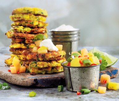 Den här rätten är det lättare att gilla på en gång, åtminstone för oss som gillar lite mer spännande smaker. Lättlagade, mexikoinspirerade plättar som får den rätta “kicken” av en het och fruktig salsa. Du gör plättarna mer eller mindre barnvänliga genom att ta mer eller mindre chili. Habanero är rysligt starkt men med en god fruktig citruston. Den ser ut som en liten paprika och finns i olika färger. Använd den med vördnad, och med handskar. Den som bara har stora barn kan tillsätta yttepytte tequila för extra umpf. Istället för crème fraiche funkar det givetivis bra med en magrare gräddfil eller cottage cheese. Och som extra topping lite smulad fetaost.