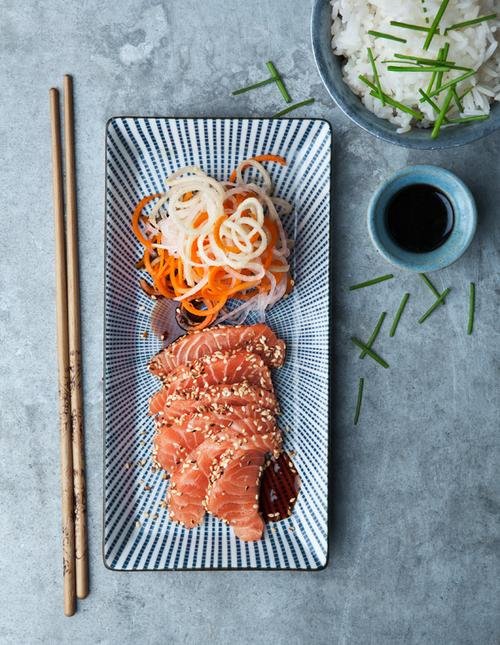 Lyxig snabbmat. För att du är så himla värd det. Salma är en fisk som lever djupt nere i Barents hav. Den styckas direkt på båten vilket gör att den inom 4 timmar är på väg till oss konsumenter. Det gör den extra smakrik och väl värd de extra kronorna. Sesamfrönas nötiga smak ger karaktär åt den feta laxen och balanserar de sötsyrliga grönsakerna och såsen.
