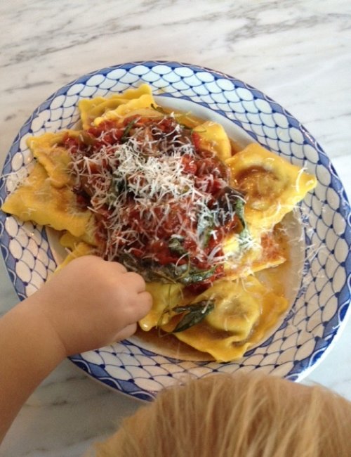 Pasta med salviasmör och tomatsås Lagom till 2 personer. Klart på en kvart. Det finns många märken på pastakuddar – a.k.a ravioli och tortellini – i butiken. Jag brukar köpa de dyraste och undvika de med skinka då den torkade smaken får mig att känna mig som en tonårig scout igen. Oftast tycker jag de med svamp eller ricotta är godast. Denna gång köpte jag Matic, fyllda med Karl Johan. Klart godkända.