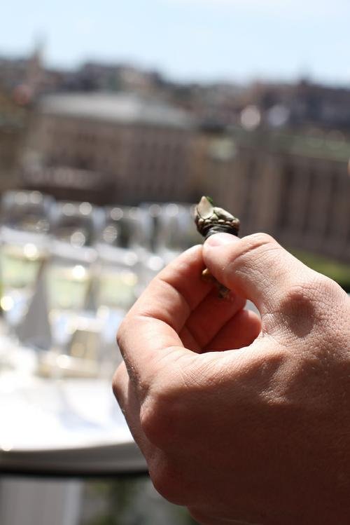 Mitt jobb har sina för- och nackdelar. Till fördelarna hör att man får dricka champagne före klockan 12 ibland. Om man är kräsmagad skulle man definitivt tycka att det var en stor nackdel att tvingas äta tuppkam, långhalsar, bläckfisk och spädgris till lunch. Får man skölja ned djuren med lite gott i glaset och dessutom sitta med hela Stockholm under fötterna kanske det går bra ändå.