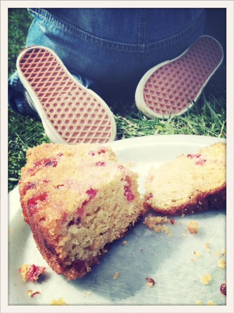 Knäckig mandelkaka med vinbär En ganska kompakt kaka med knäckig yta från råsocker och kolasmak från muskovado dito. Plussad med mandelmjöl och syrliga vinbär.
