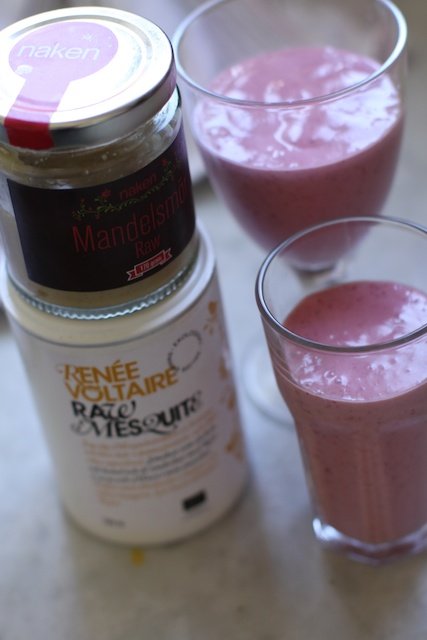 Hallonsmoothie med mandelmjölk Känn inte att du måste köpa trädpulvret men prova gärna mandelmjölk. Mjölken ger en ljuvlig mandelsmak till smoothien men kan självklart ersättas med vanlig mjölk, vaniljyoghurt eller yoghurt.