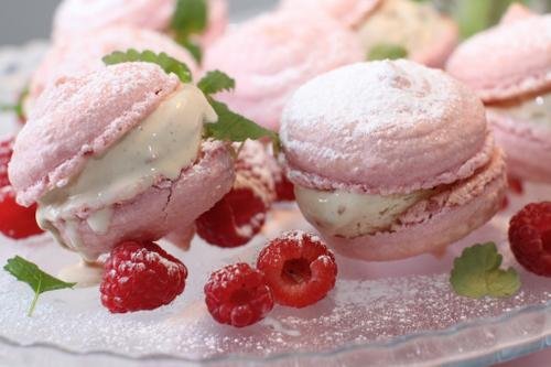 Använd flytande honung eller vit sirap till glassen, inte fast honung som blir för dominerande i smak och dessutom blir glassen inte lika krämig. Förvara makronerna väl inplastade i frysen i ca 1 vecka. Räcker till 8 st dubbla, mellanstora, bakelser.
