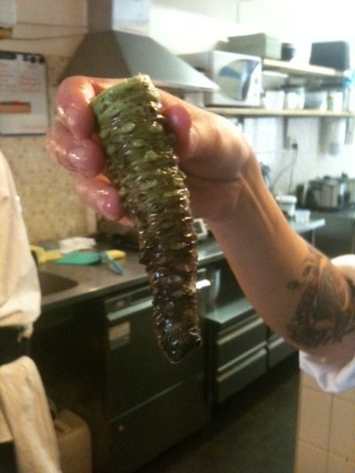 Hos Westermalmarna kan man dessutom ha turen att få smaka färsk wasabi. Vi åt den lillfingerstora snorkråkan med andakt då personalen upplyste oss om att sist Grönsakshallen Sorunda hade färsk wasabi i lagret kostade den 8000 kr kilot. Roten på bild hade smugglats in i handbagaget av en snäll kompis. Den smakade frukt och vanilj och var inte alls lika het som wasabi vanligtvis är.