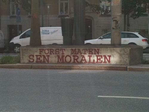Att diskutera mat och moral är populärt och frågan är vad som kommer först, är det maten eller moralen? Ibland finns det likhetstecken mellan de två. Går man på Westermalms sushi – som för övrigt kan vara stans bästa – så behöver man till exempel inte skämmas för sin räka. Så här fin skandinavisk sushitallrik kan man få för 120 pix.