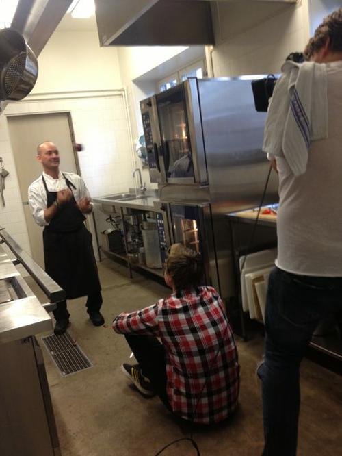 Årets kanske mest udda fotografering. Vi plåtade i ett ofärdigt restaurangkök bland elektriker och VVS-gubbar. Den gullige kocken hade en dålig dag på jobbet och fick inga varor och ryggskott vid lunch. När sista bilden var tagen gick han på toa, men glömde att handtaget inte var installerat ännu...