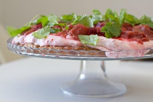 Jag måste utöka min tårtrepertoar. Maj har knappt börjat och jag har redan gjort mina två ess, marängtårta och mandelmassetårta. Den senare tillhör kategorin: extremt lättbakat. För att göra den extra vårig toppade jag den med vaniljkokt rabarber och hallongrädde.