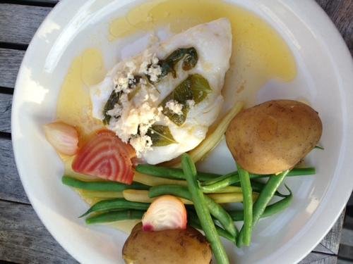 Tillbehör: färskpotatis, rödbetor och färska bönor efter tillgång