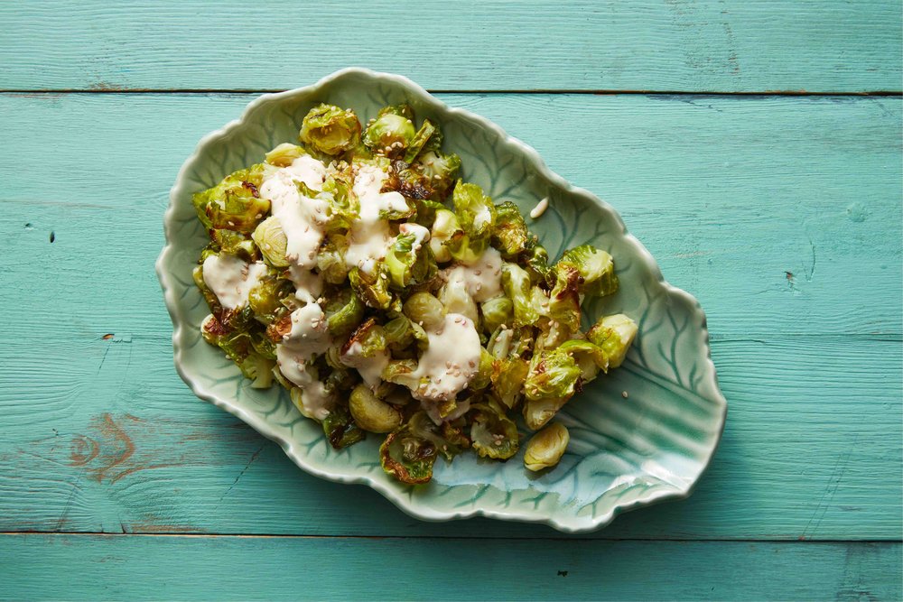 Rostad brysselkål med sesamfrön och ingefärsdressing